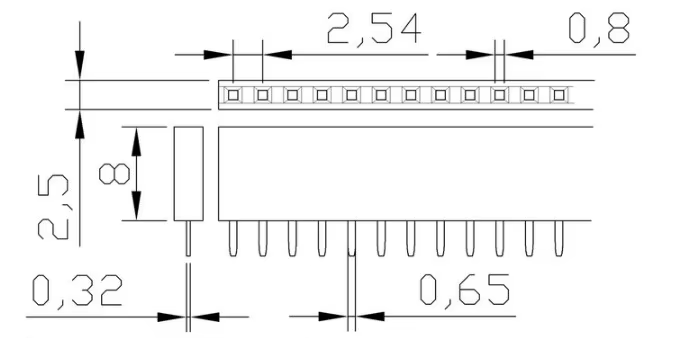 Kit: 2 barras de pinos fêmea 1x12P 2,54 mm